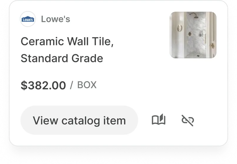 Supplier-backed pricing data from Home Depot, Lowe's, and more