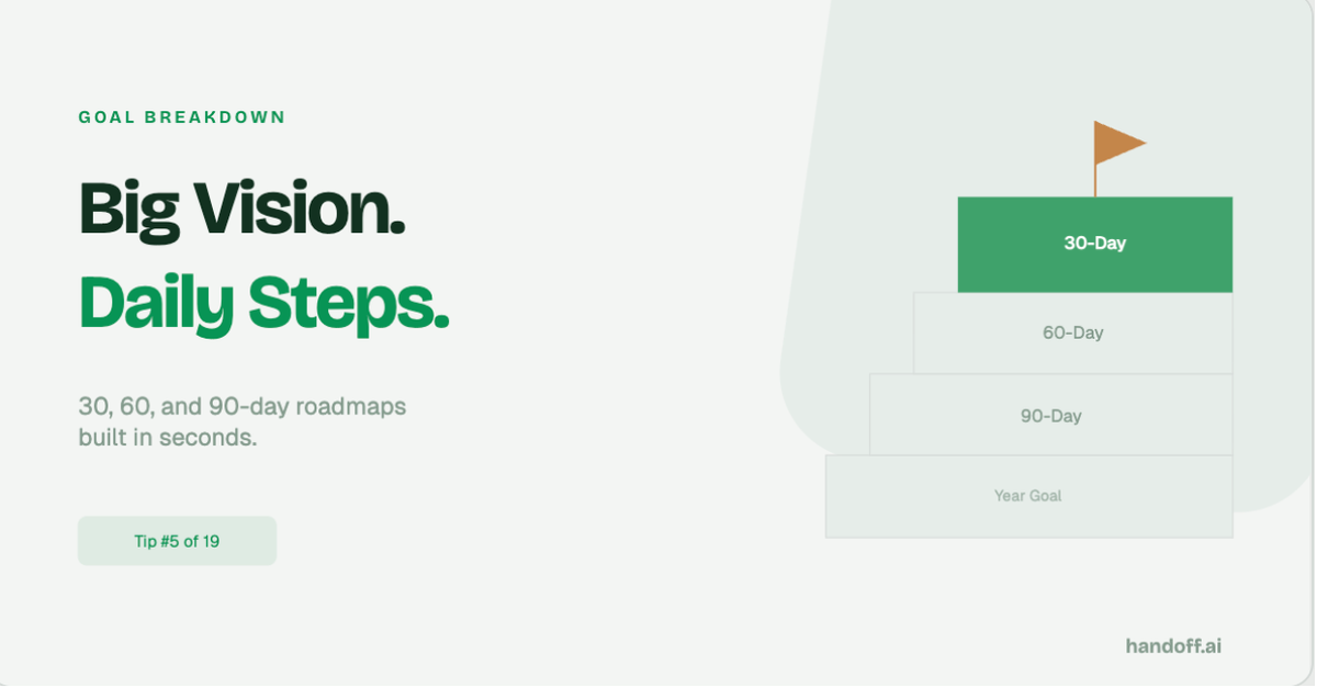 How to do it: Tell your AI your ultimate goal (e.g., "I want to increase my remodeling revenue by 30% this year"). Ask it to design a granular 30, 60, and 90-day roadmap with specific, weekly action items. It will break down the overwhelming vision into bite-sized, executable tasks.