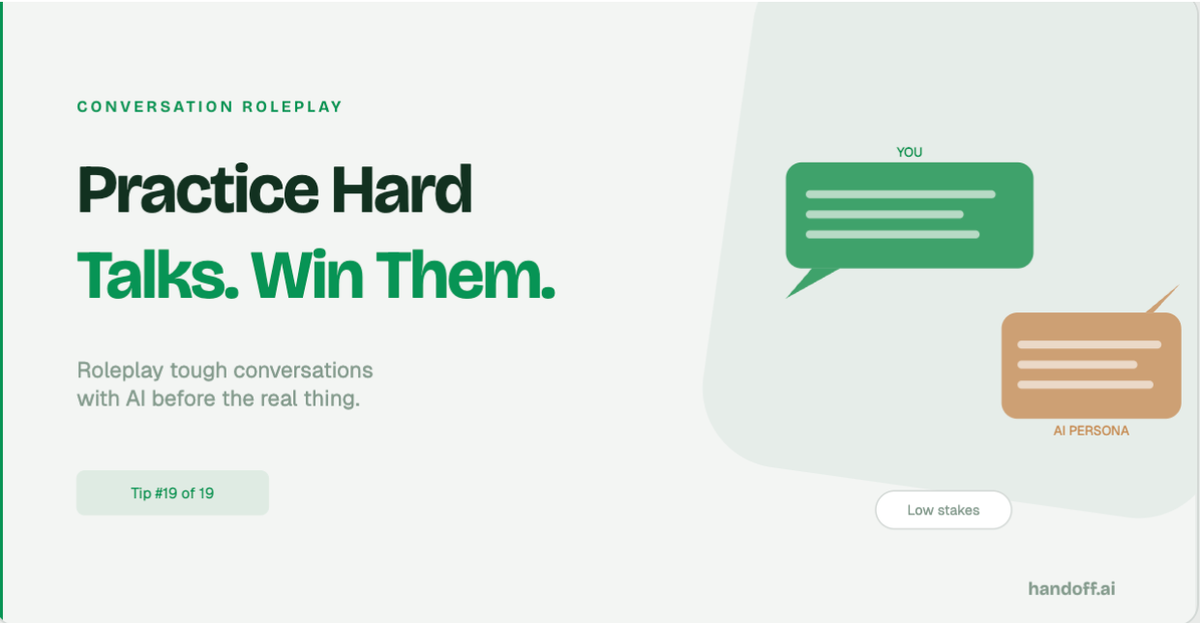 How to do it: Ask the AI to adopt the persona of the person you need to speak with (e.g., an underperforming subcontractor or an angry client). Instruct it to roleplay the conversation with you. Practice explaining your perspective and let the AI push back. Running through the scenario in a low-stakes environment will make you significantly more comfortable when it is time for the real conversation.