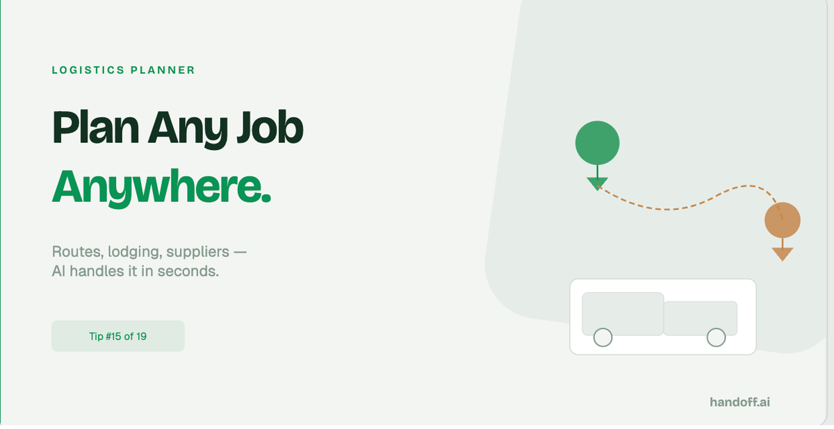 Managing out-of-town projects or complex multi-site builds can be a logistical nightmare. AI can handle the heavy lifting of travel and supply chain planning.