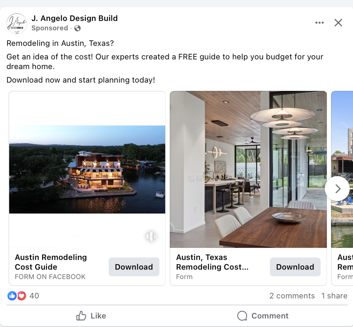 We recommend starting with about $500/month to Facebook ads to consistently bring in 8-10 qualified leads. When you consider that just one kitchen remodel can be worth $30,000+, that's an incredible return on investment. Use these tried and true Facebook ad ideas for home remodeling leads to help get you started.