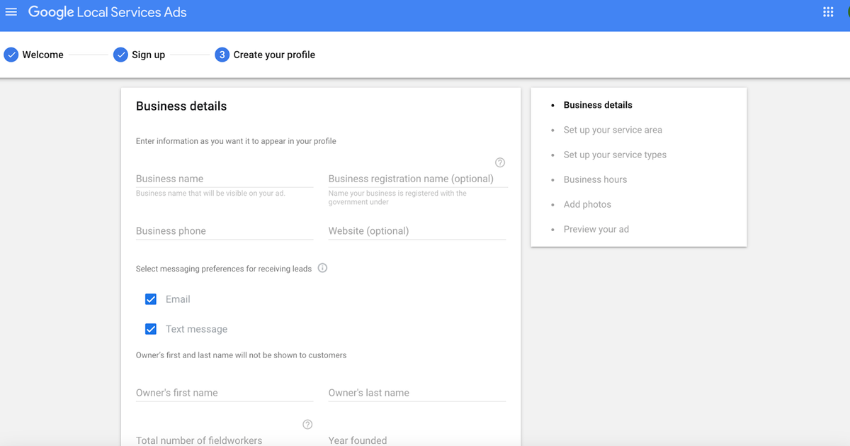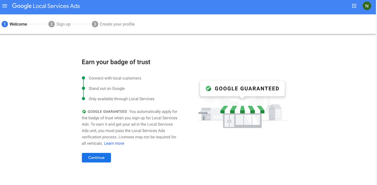 - Sign up viaGoogle Local Services Ads Manager