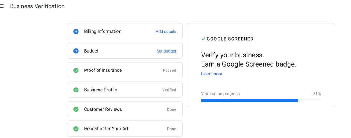 Google has strict eligibility requirements for businesses looking to run LSAs. First things first, you need to make sure youset up and optimize your Google My Business profile. Then, as a residential construction contractor, you must: