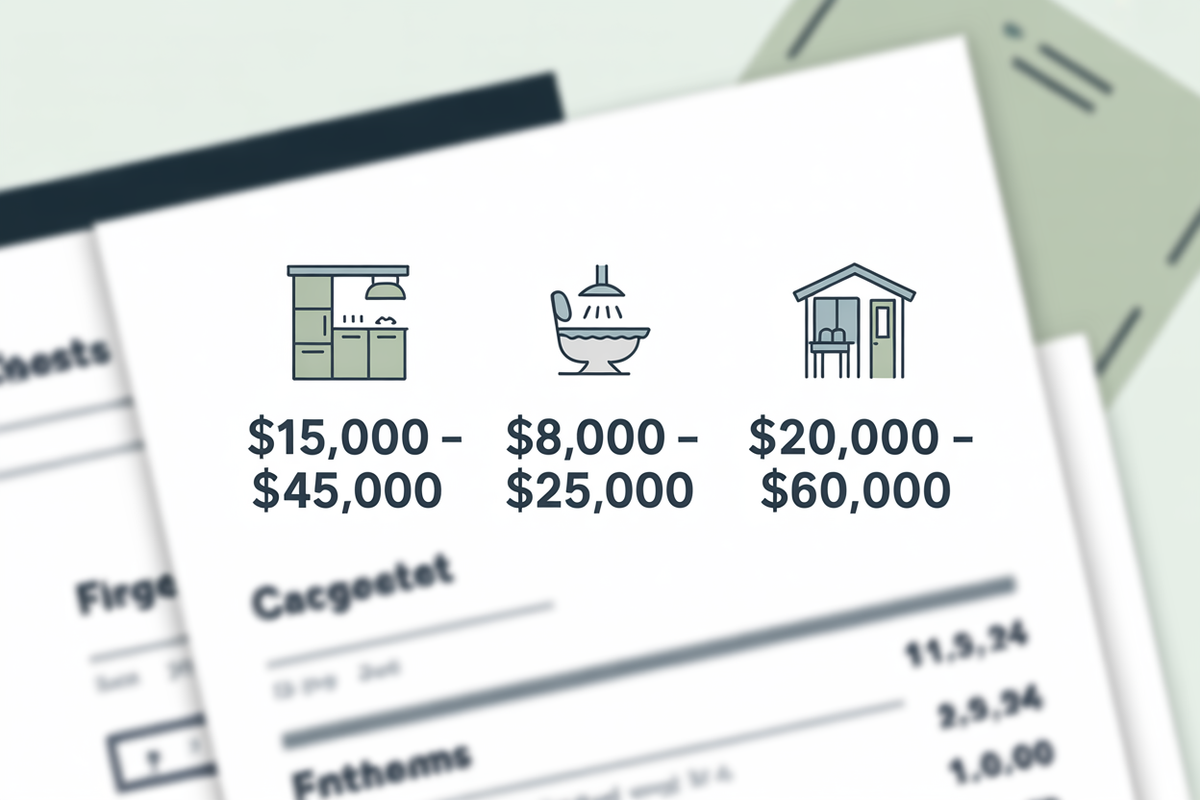 Use a clean graphic with typical price ranges for kitchens, bathrooms, basements, or interior remodels. You can also use a blurred example estimate to show transparency without revealing client details. Make sure the numbers are easy to read.
