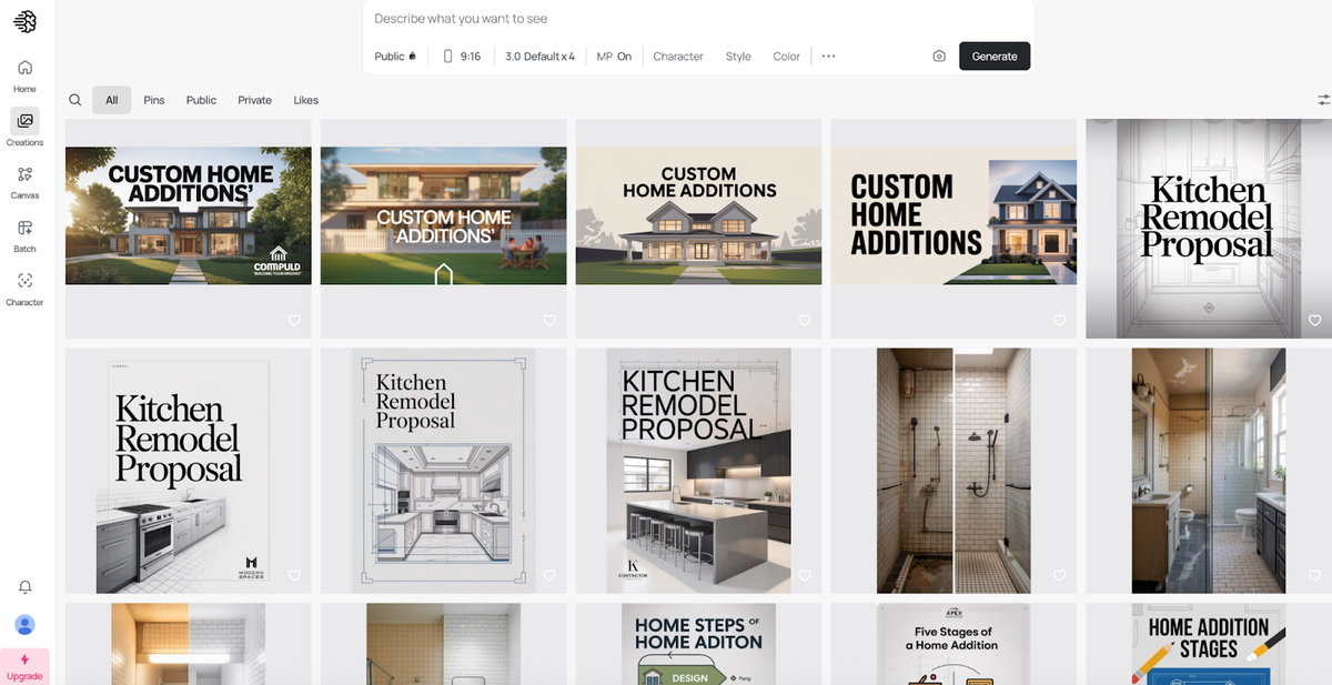 The tool is particularly powerful for before/after visuals. Take a photo of a dated bathroom, and Ideogram can help you create a realistic visualization of what it could look like after renovation. This isn't just helpful for marketing, it's a sales tool that helps clients see the potential in their space and understand the value of your work.