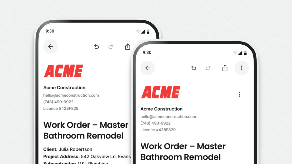 Paper punchlists and mental notes leave crews guessing what is complete. Instead, snap a photo or jot notes in Handoff, and AI turns them into a clear, shareable checklist your crew can check off on their phone. Nothing gets missed, and the job moves faster.