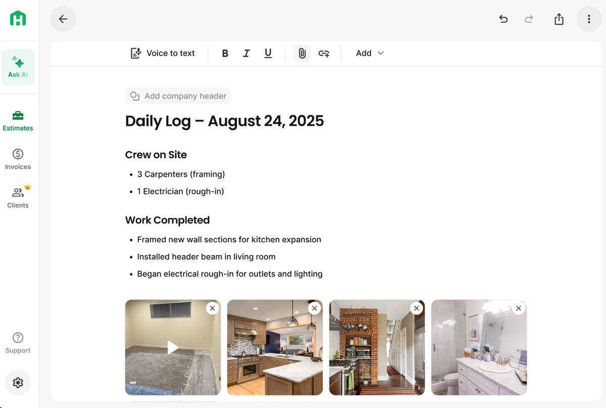 With this release, Handoff makes it AI-powered. You can now turn the data you already have, estimates, site photos, videos, or notes, into professional project documents in seconds, created with AI.