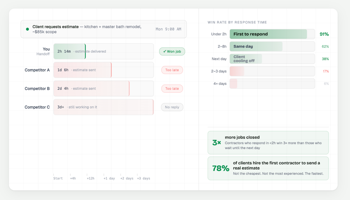 Each of these is a separate leak in your profit bucket. AI estimating tools like Handoff are designed to plug all four at once.