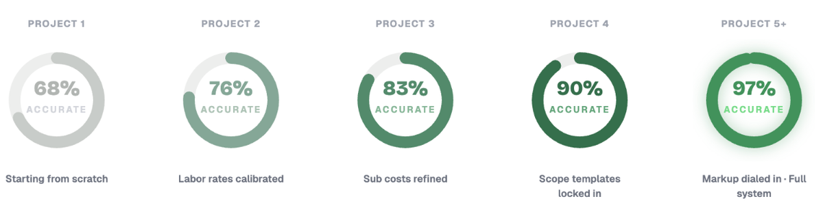 Every completed project gives you better information for the next estimate. Your labor history, subcontractor costs, scope templates, and markup structures build up over time. Instead of starting from scratch on every job, you start from what already works.