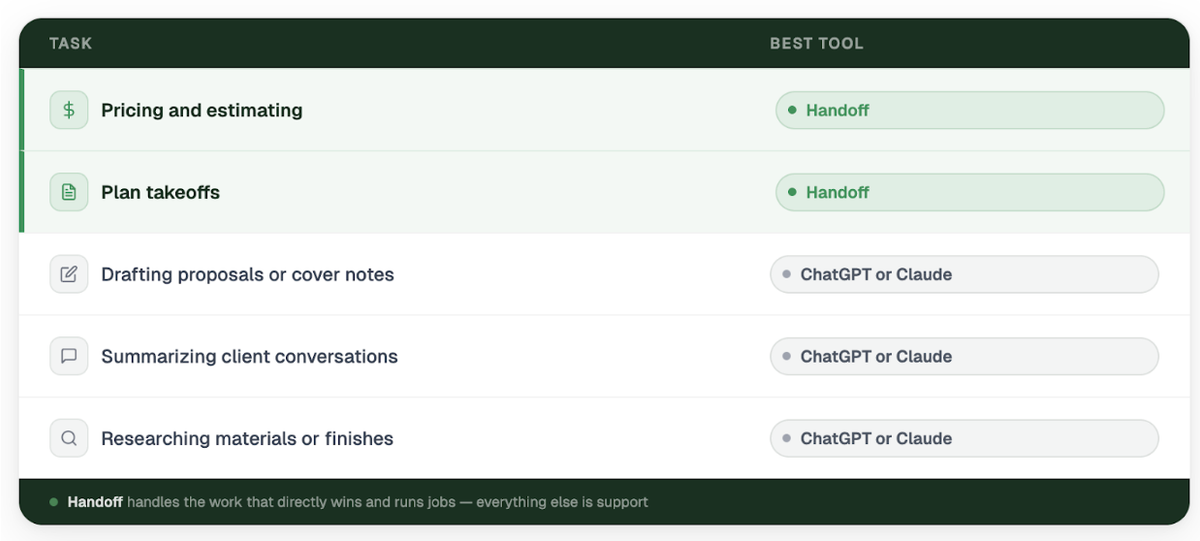 The goal is not to remove human judgment. It’s to spend less time on repetitive admin and more time keeping jobs moving. Everything should still be reviewed before it goes to a client or crew.