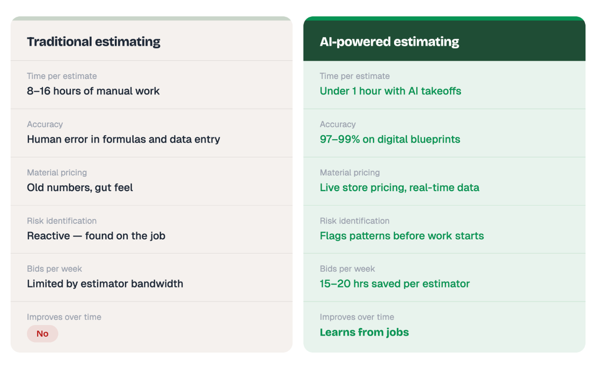 The takeaway is simple: AI doesn’t just make estimating faster, it frees you up to bid more jobs, make better decisions, and protect your margins without working longer hours.