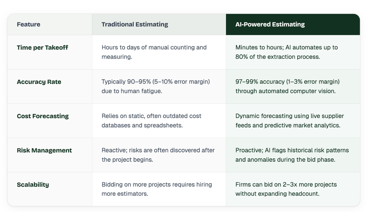 Traditional vs. AI Estimating: A Direct Comparison