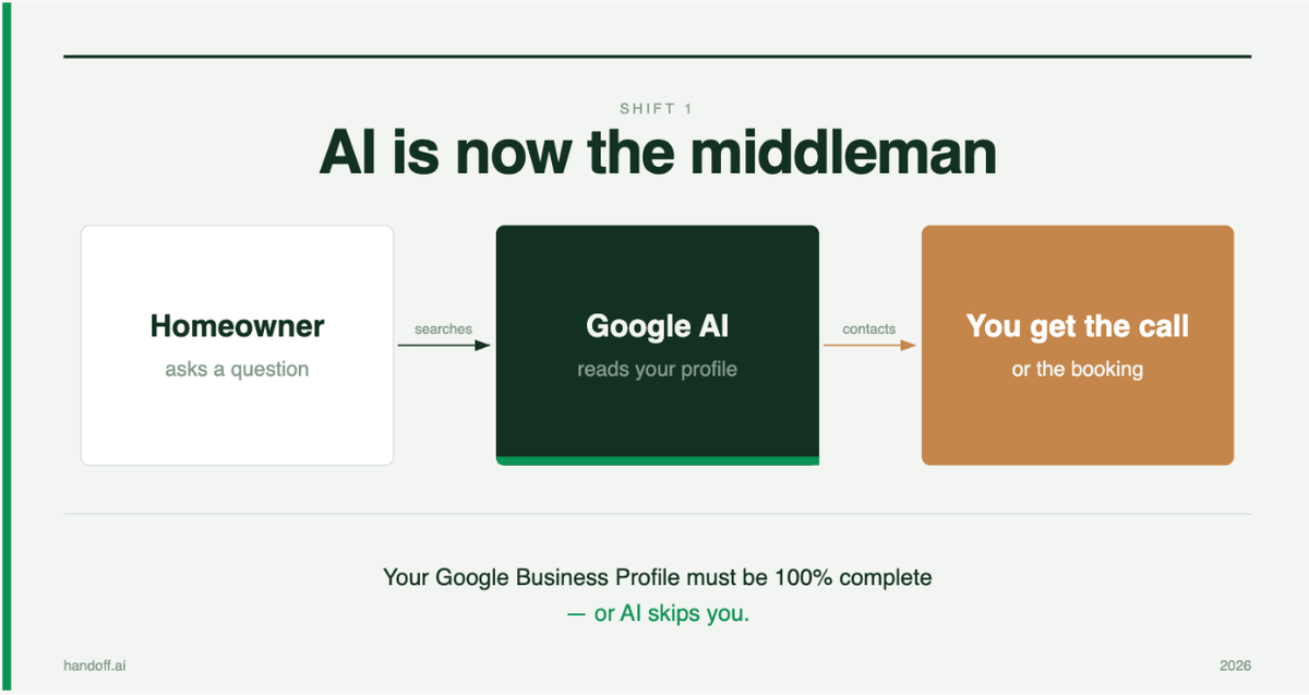 In 2026, the way homeowners find contractors has shifted in three major ways. They're using AI assistants to ask questions out loud. They're trusting Google's AI-generated summaries instead of clicking through websites. And they're making decisions faster than ever, often without ever visiting your website at all.