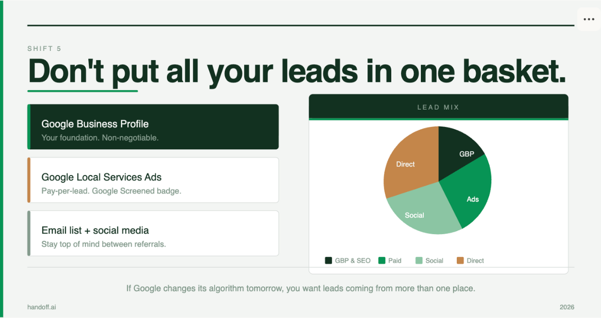 One of the biggest mistakes I see contractors make is relying entirely on one lead source. Whether it's Google organic, the map pack, or a lead generation service, putting all your eggs in one basket is a recipe for disaster.