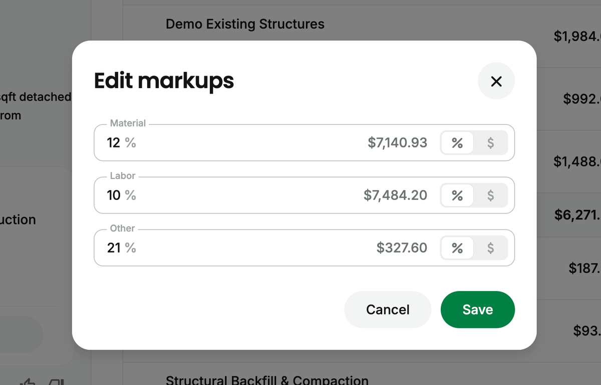 Up until now, Handoff used a single markup setting across an entire estimate. That worked for basic pricing, but not for contractors who needed more granular control.