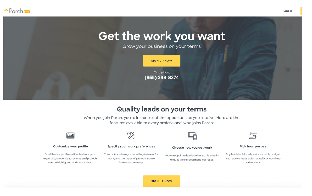 Porch tends to work best for established contractors with larger budgets who are comfortable purchasing leads consistently.