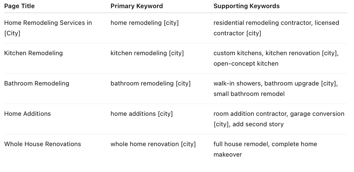 Sprinkle phrases like “contractor near me” or “we remodel homes in [city]” into your service pages. Use natural language instead of stiff sales copy.