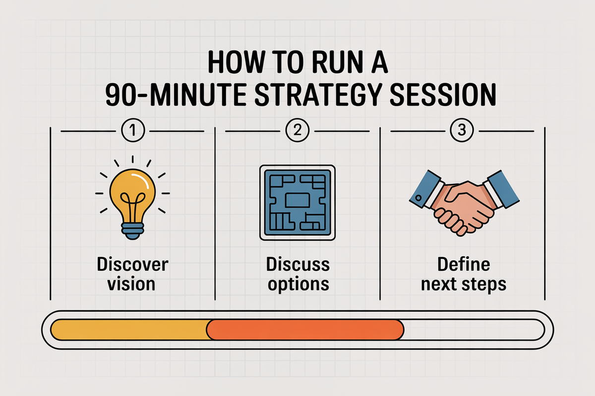 The Setting: Your office or a professional meeting room, 60-90 minutes dedicated time, all decision-makers present, no interruptions.