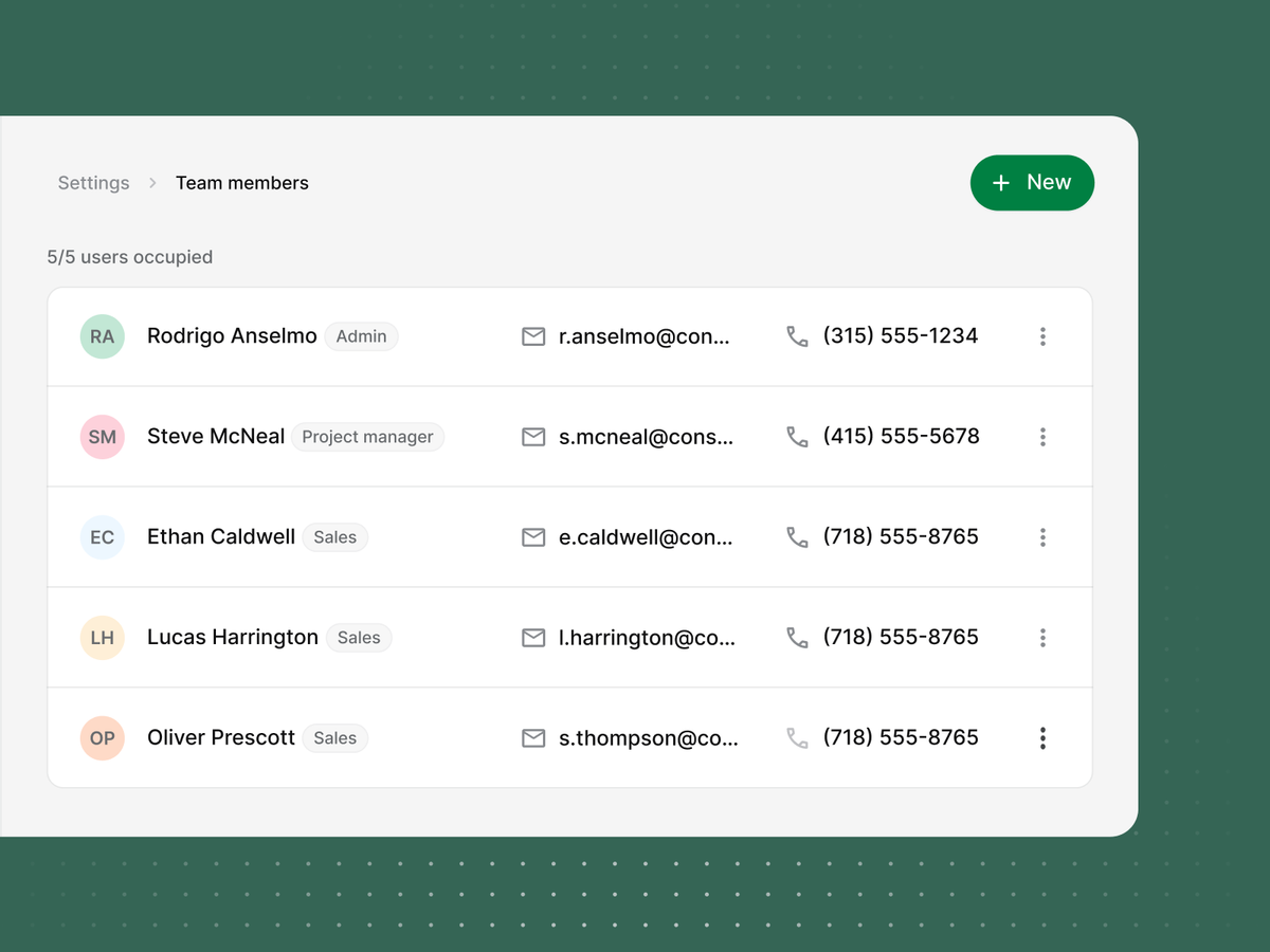 - Project managers can track progress, handle change orders, and communicate with clients within the guardrails you've set.