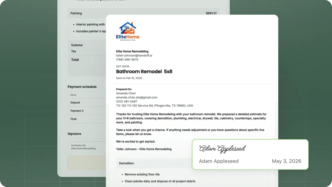 More than 10,000 contractors switched to Handoff to replace their admin with an AI Teammate. They stay because it keeps winning them jobs.