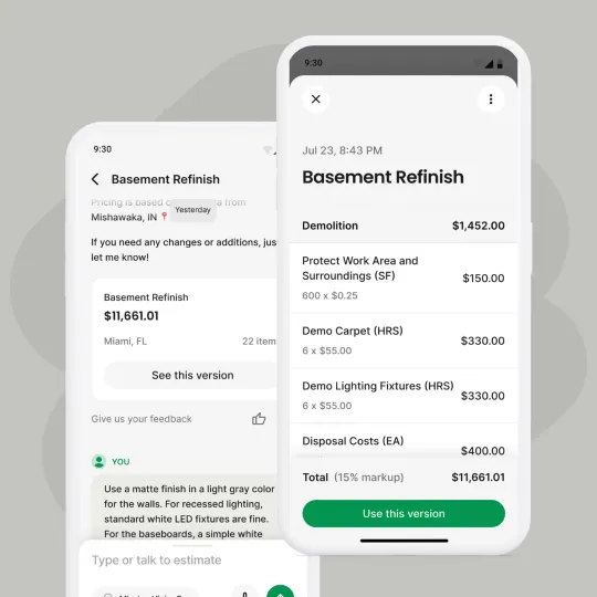 - Revamped Onboarding: Our AI Chat will walk new users through creating their first estimate with AI. We’ll ask about your company and some basic preferences, so we can deliver more relevant estimate examples and accurate prices.
