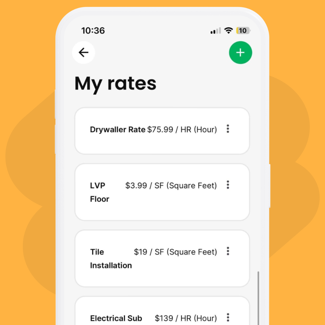 Set your default labor and material rates once. Use them for every estimate.
