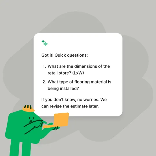 The AI asks smart questions to ensure accurate estimates