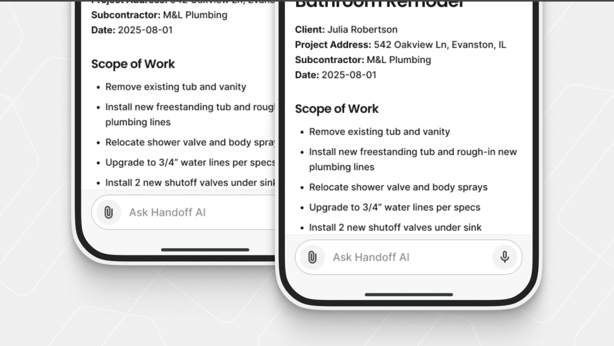 With this release, Handoff makes it AI-powered. You can now turn the data you already have, estimates, site photos, videos, or notes, into professional project documents in seconds, created with AI.