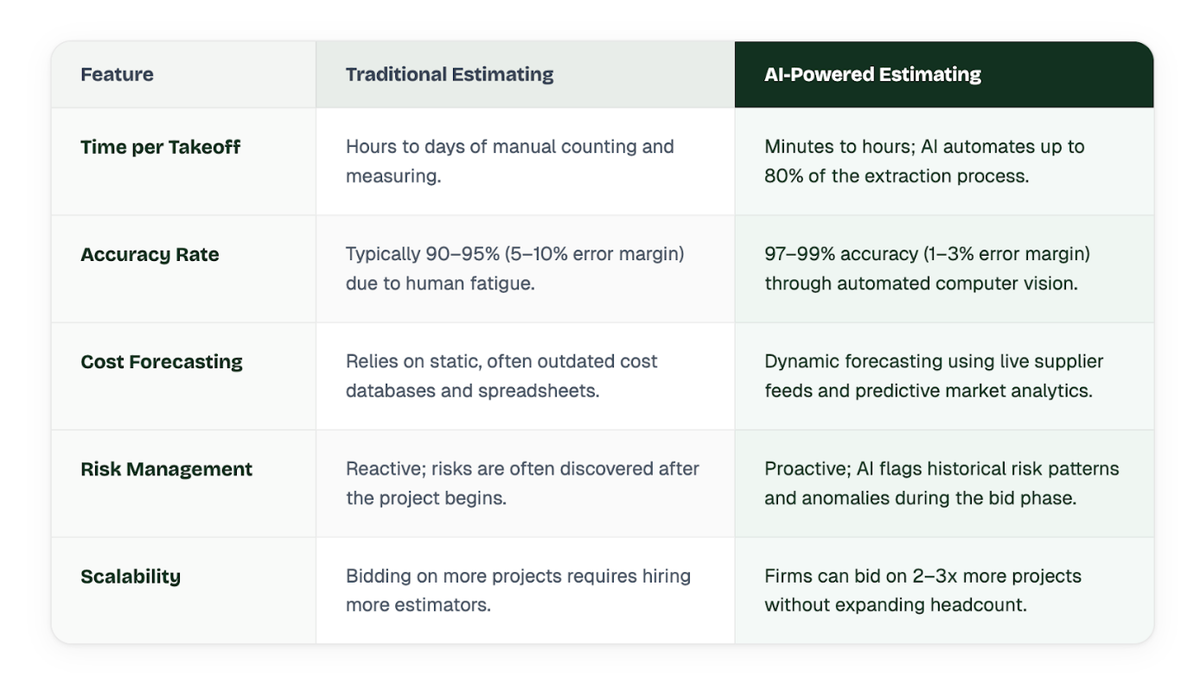 Traditional vs. AI Estimating: A Direct Comparison