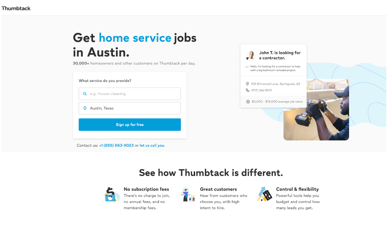 Thumbtack is ideal for budget-conscious contractors who want more control over what they spend and prefer to pay only when engagement actually occurs.