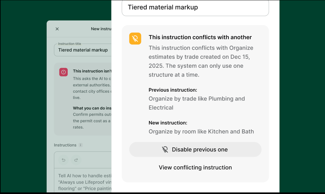 You define rules once, like markups, waste factors, or job-specific conditions, and Handoff applies them automatically across every estimate and document. It also validates those rules before running, so if something conflicts or doesn’t apply cleanly, you’re alerted instead of getting a bad output.