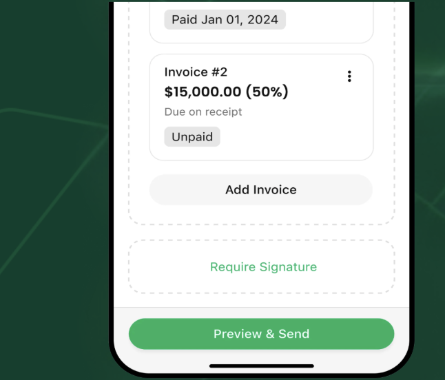 Create milestone invoices directly from your proposals. Add proof of work, send itemized invoices, and get paid as each stage is completed.
